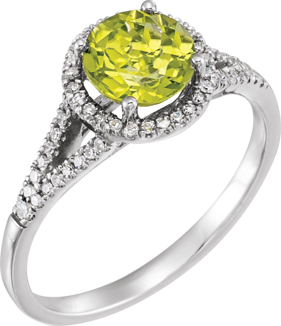 14K White Peridot & 1/5 CTW Diamond Ring