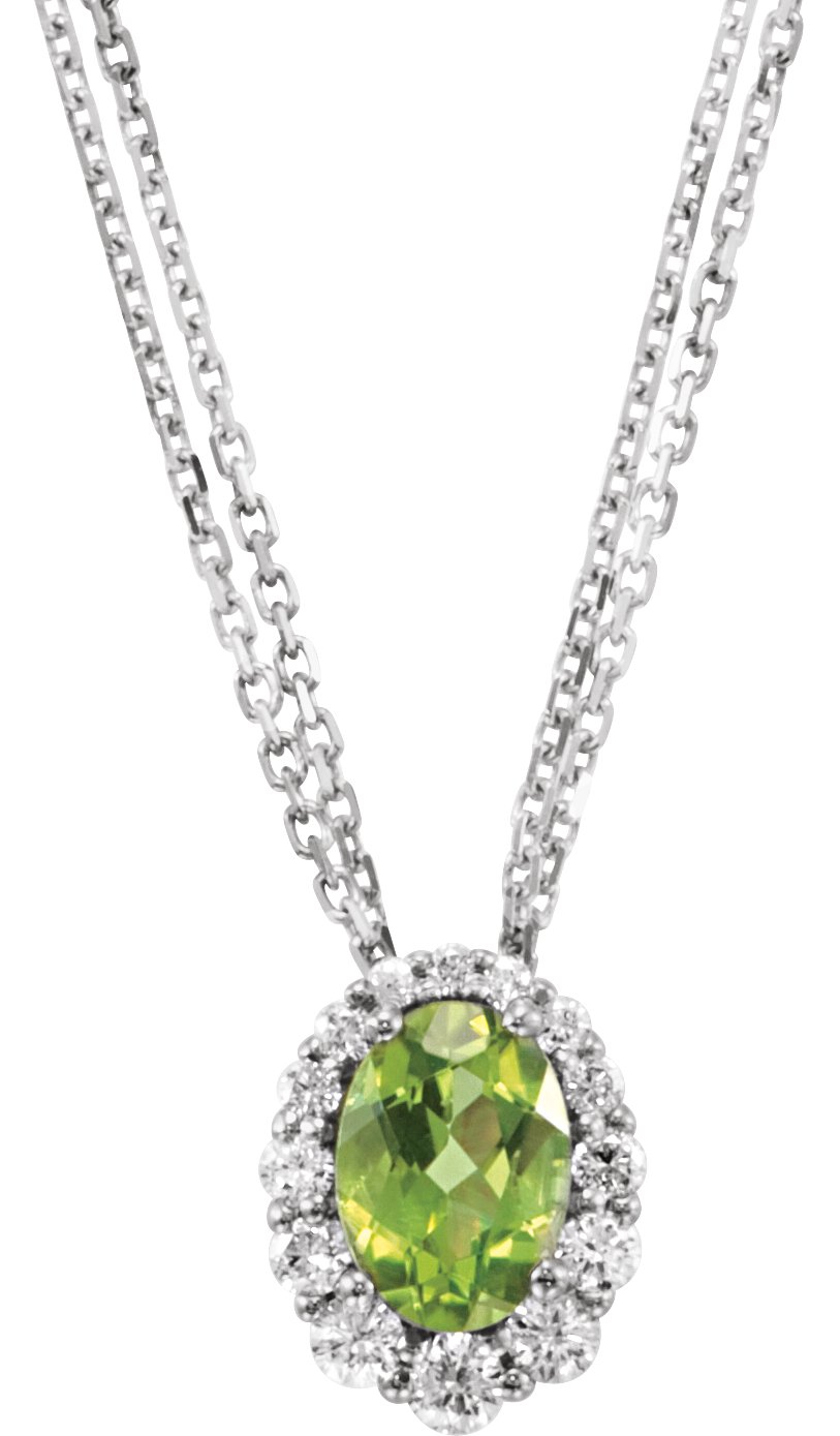 14K White Peridot & 1/4 CTW Diamond 18 inch Necklace