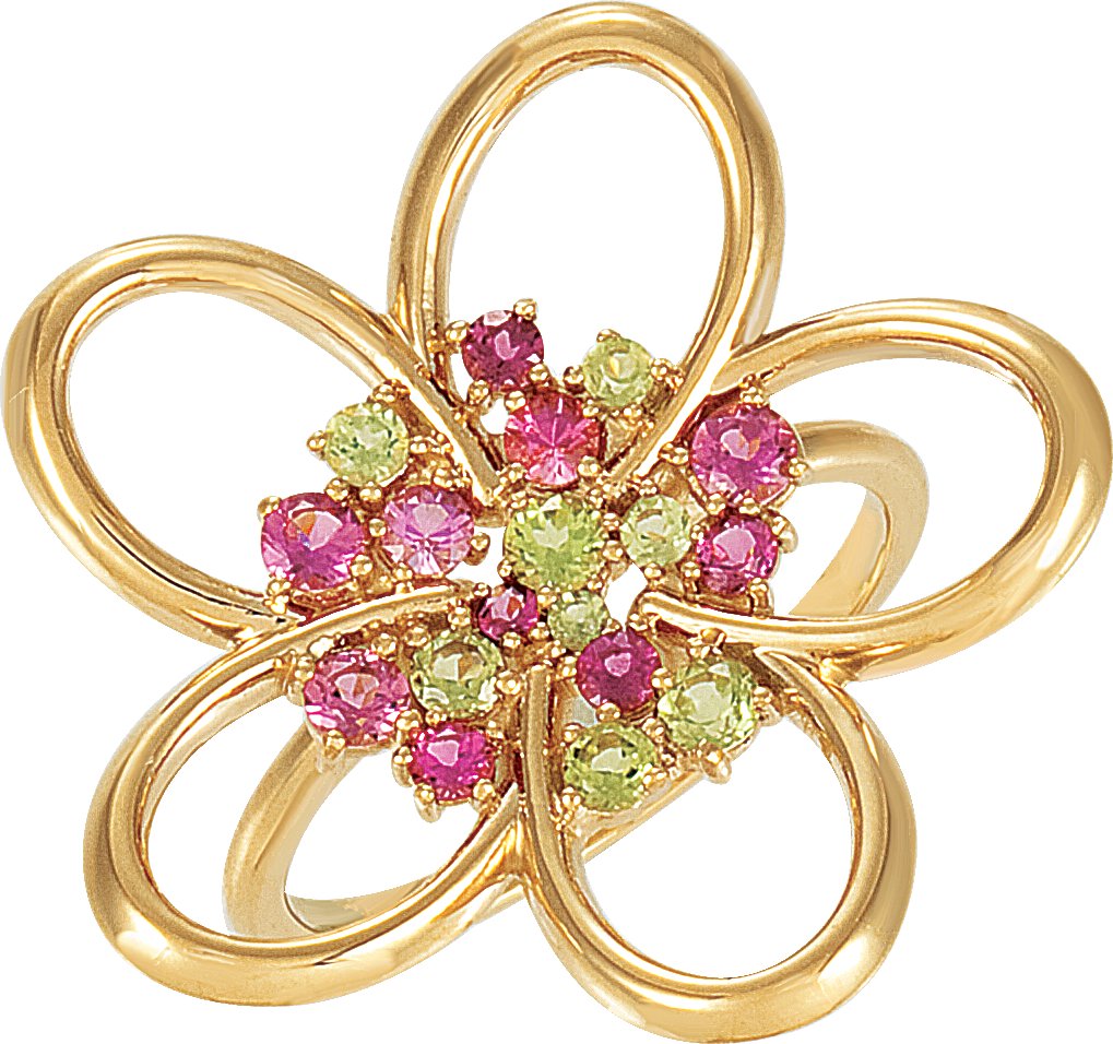 Description: Peridot And Pink Tourmaline Flower Ring