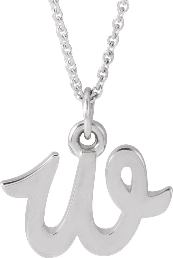 14K White Petite Initial W 16" Necklace