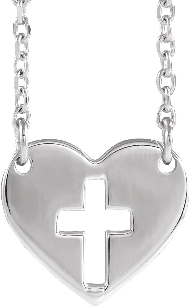 14K White Pierced Cross Heart 16 18" Necklace Ref. 12908247