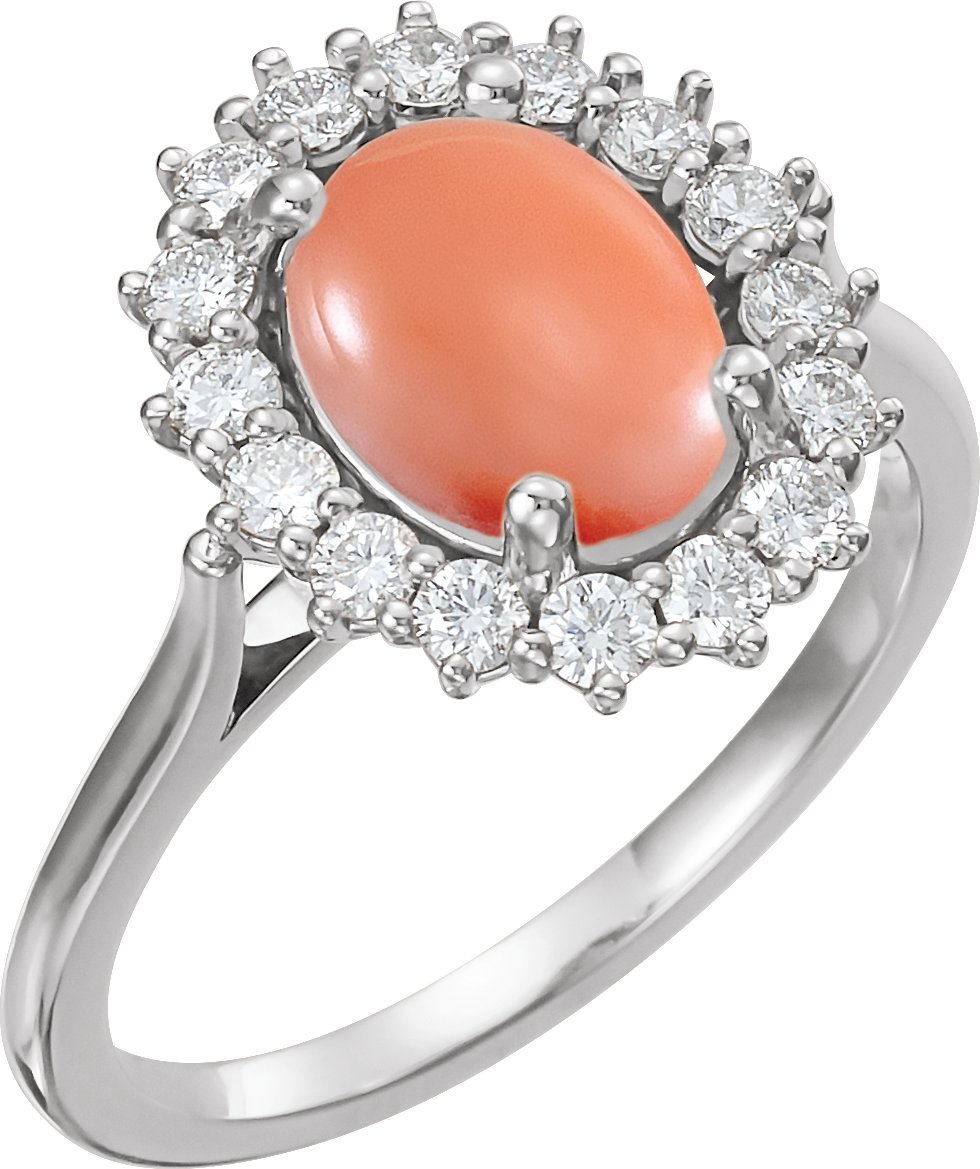 Description: Genuine Pink Coral And 3/8 CTW Diamond Ring