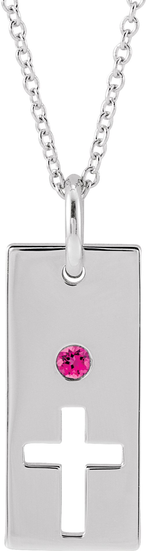 14K White Pink Tourmaline Cross Bar 16 18" Necklace Ref. 17077752