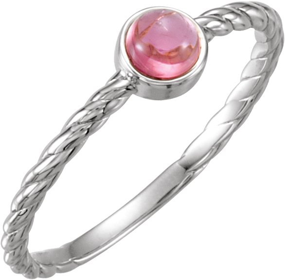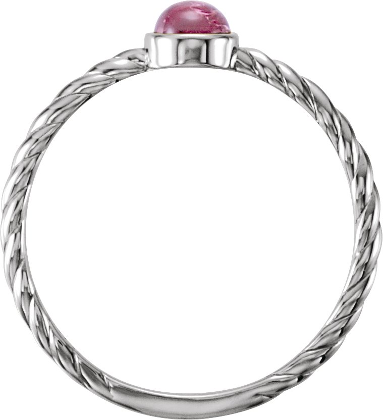Description: Genuine Pink Tourmaline Cabochon Rope Ring