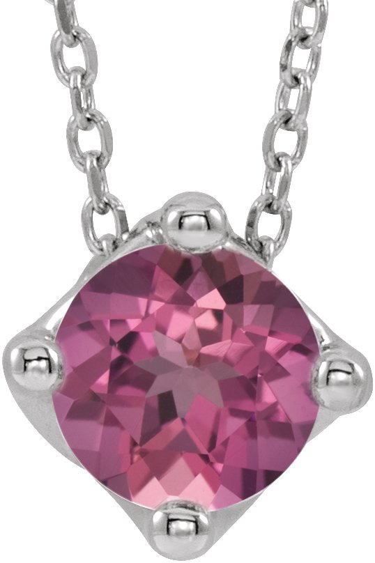 14K White Pink Tourmaline Solitaire 16 18" Necklace Ref. 15609348
