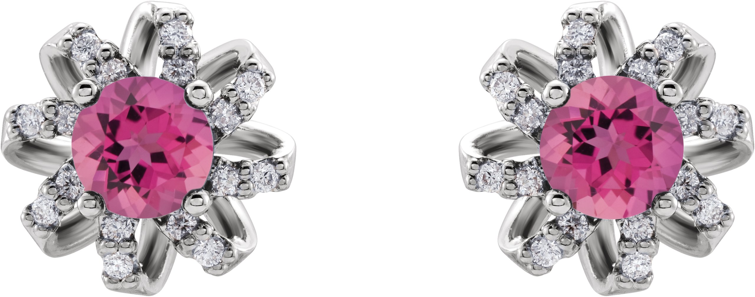 Description: Pink Tourmaline Earrings With Diamond Accents