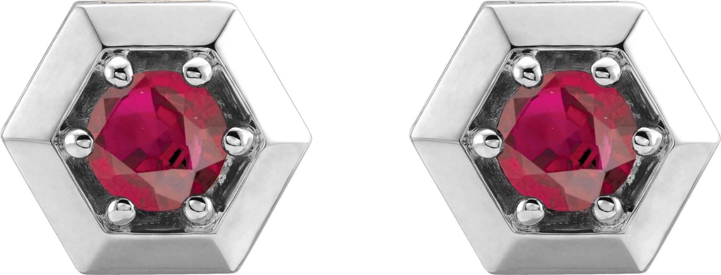14K White Ruby Geometric Earrings