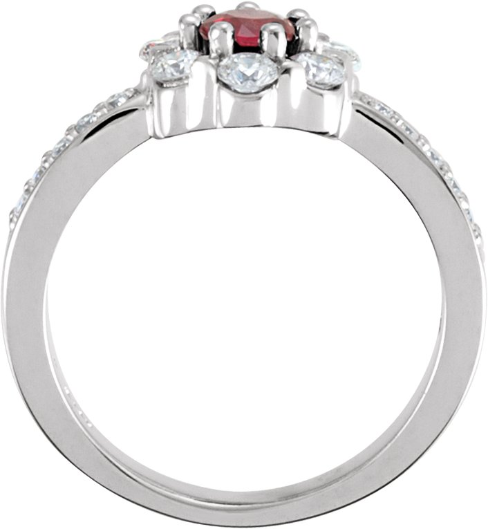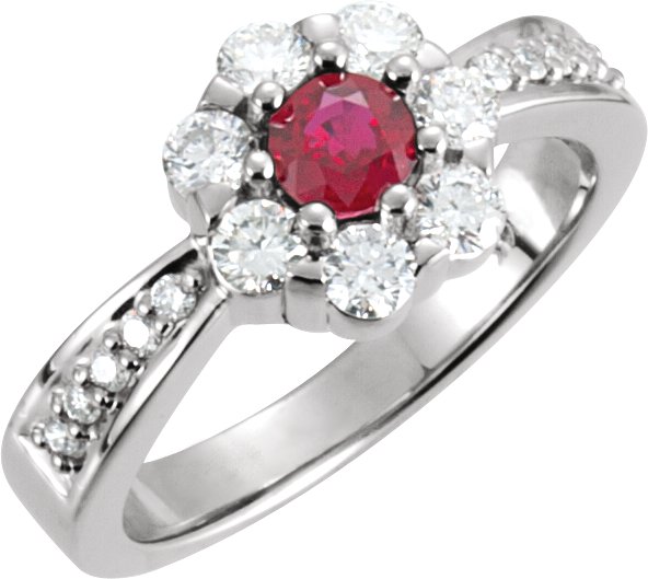 14K White Ruby and .75 CTW Diamond Cluster Ring