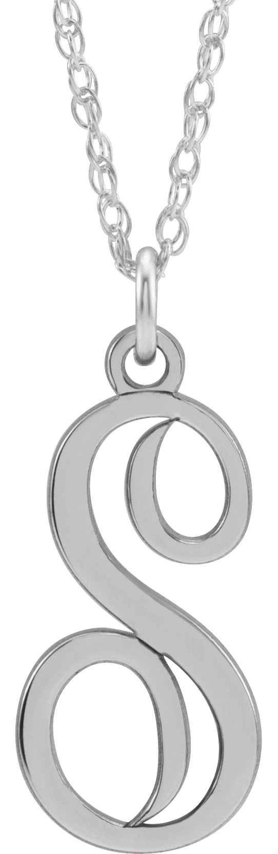 14K White Script Initial S 16 18" Necklace Ref. 16047064