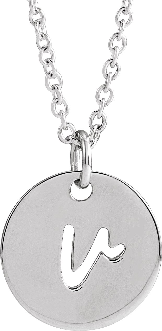 14K White Script Initial V 16-18" Necklace
