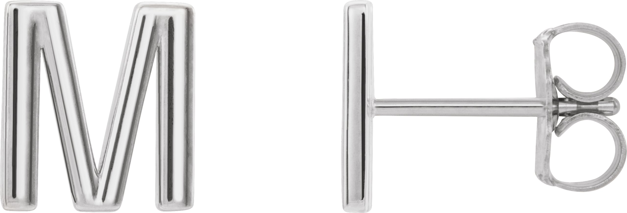 14K White Single Initial M Earring