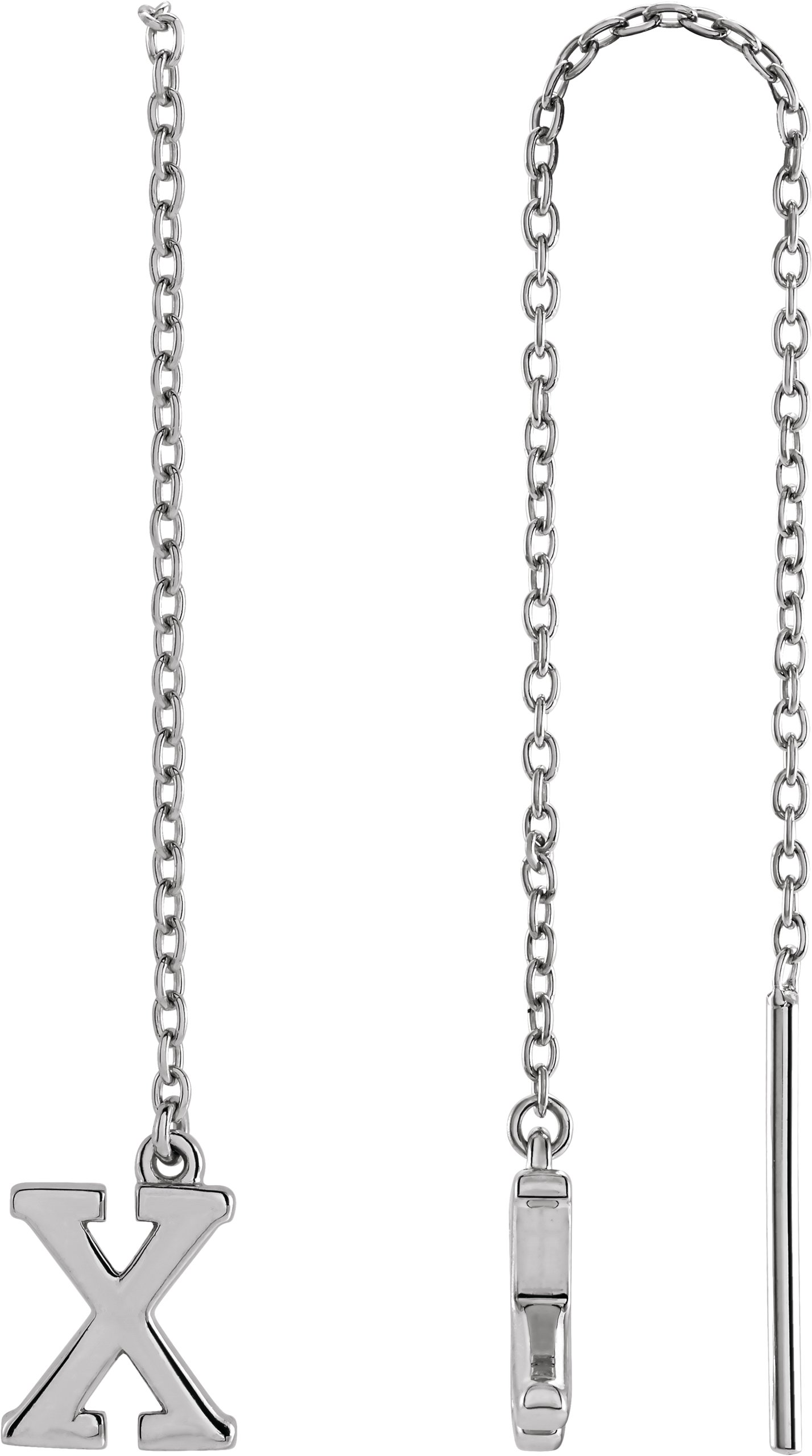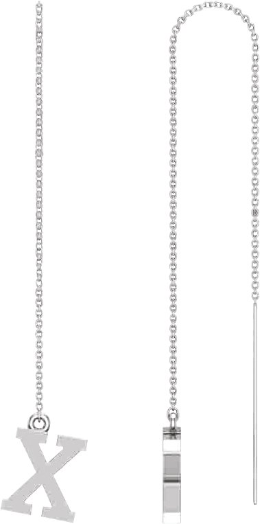 14K White Single Initial X Chain Earring
