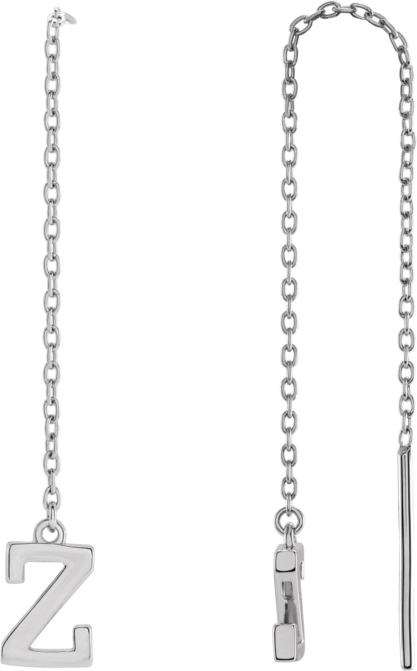 14K White Single Initial Z Chain Earring