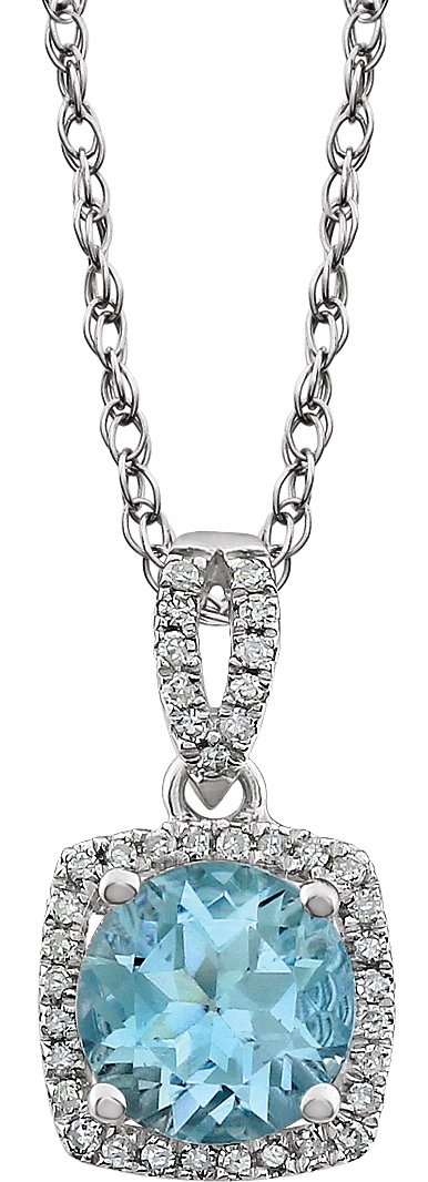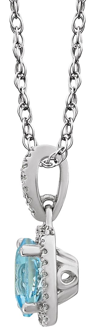 14K White Sky Blue Topaz & 1/8 CTW Diamond 18 inch Necklace