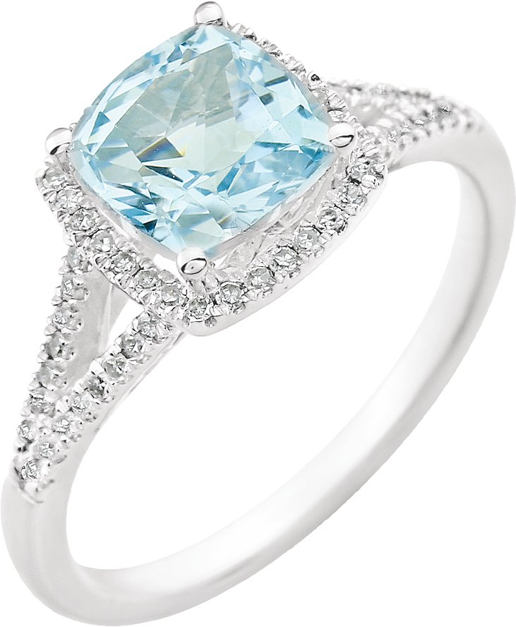 Description: Genuine Sky Blue Topaz And 1/5Ctw Diamond Ring