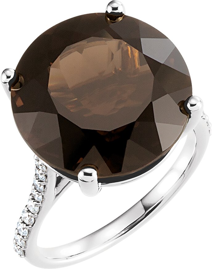 14K White Smoky Quartz and .25 CTW Accented Diamond Ring