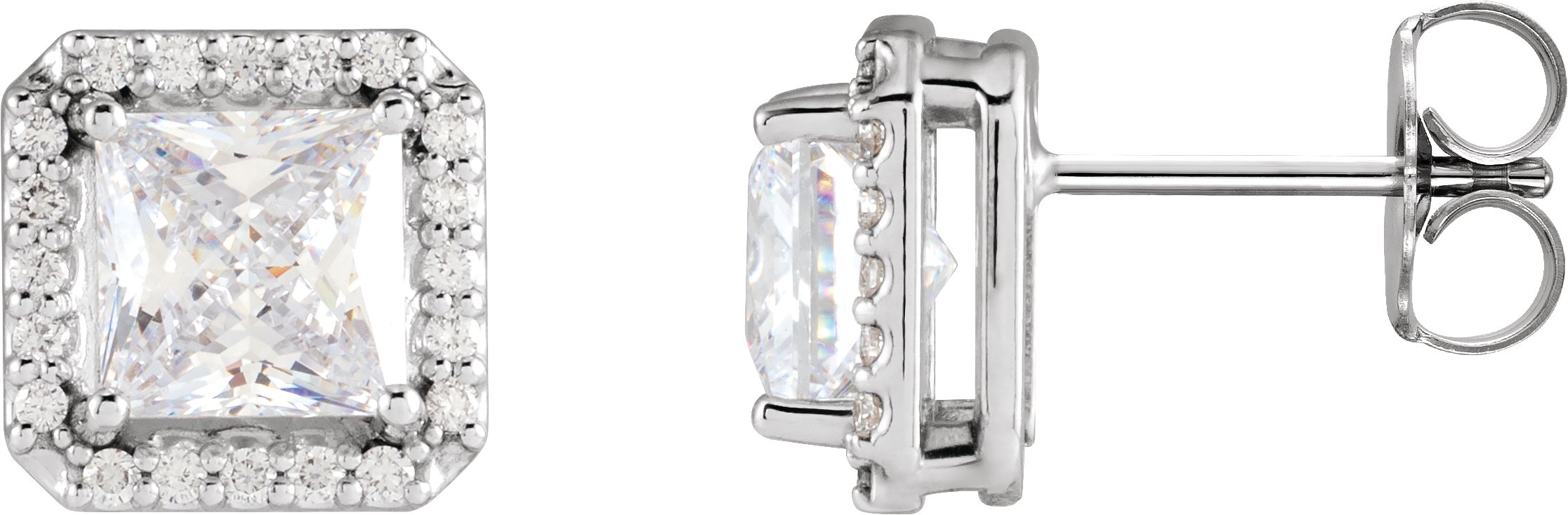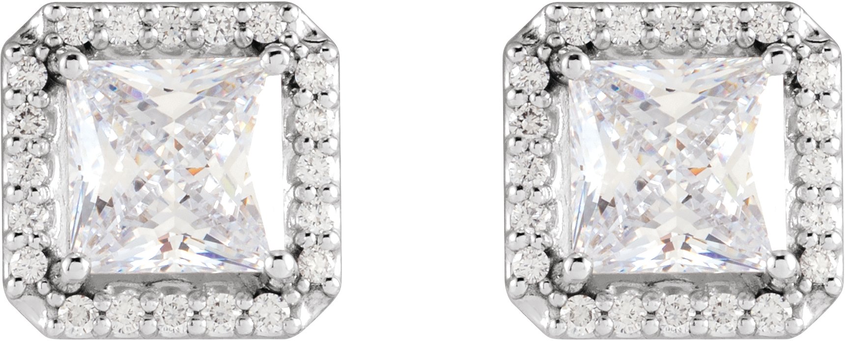 Description: Stuller Lab-Grown Moissanite And .08 CTW Natural Diamond Halo Basket Earrings