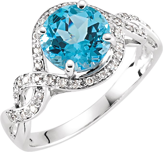 Description: Swiss Blue Topaz And 1/6 Ctw Diamond Ring