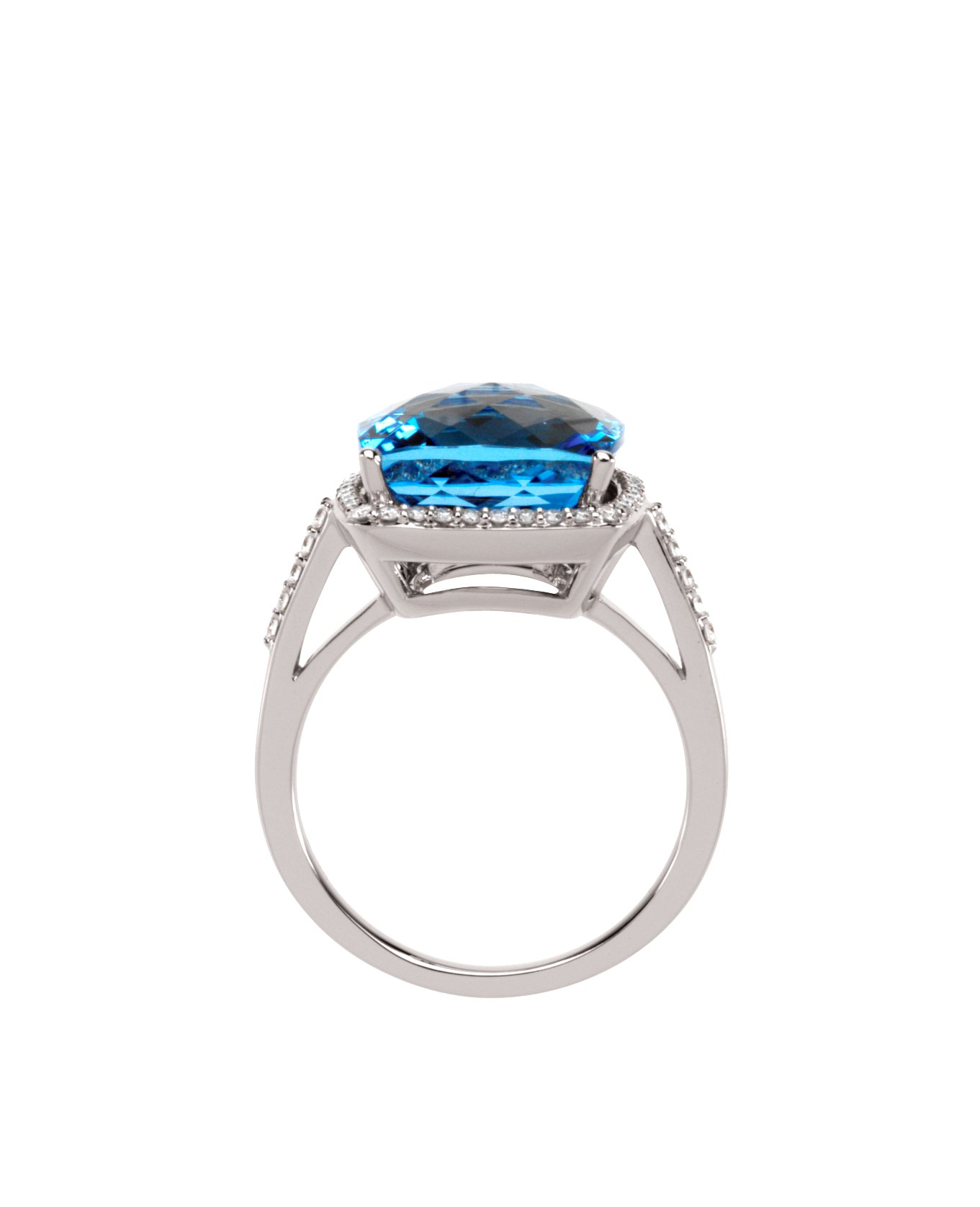 Description: Checkerboard Swiss Blue Topaz And 1/4Ctw Diamond Ring