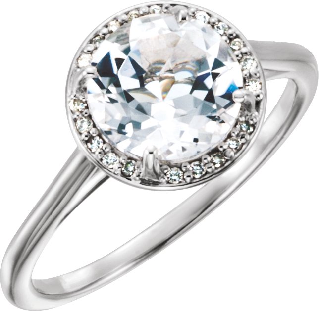 14K White Topaz & .05CTW Diamond Ring