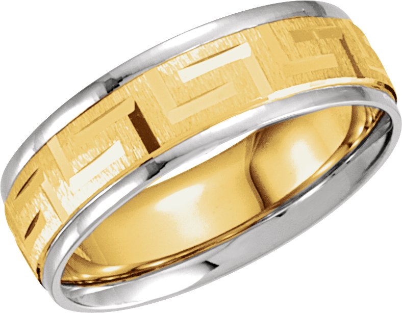 7 mm Two-Tone Comfort-Fit Greek Key Design Band