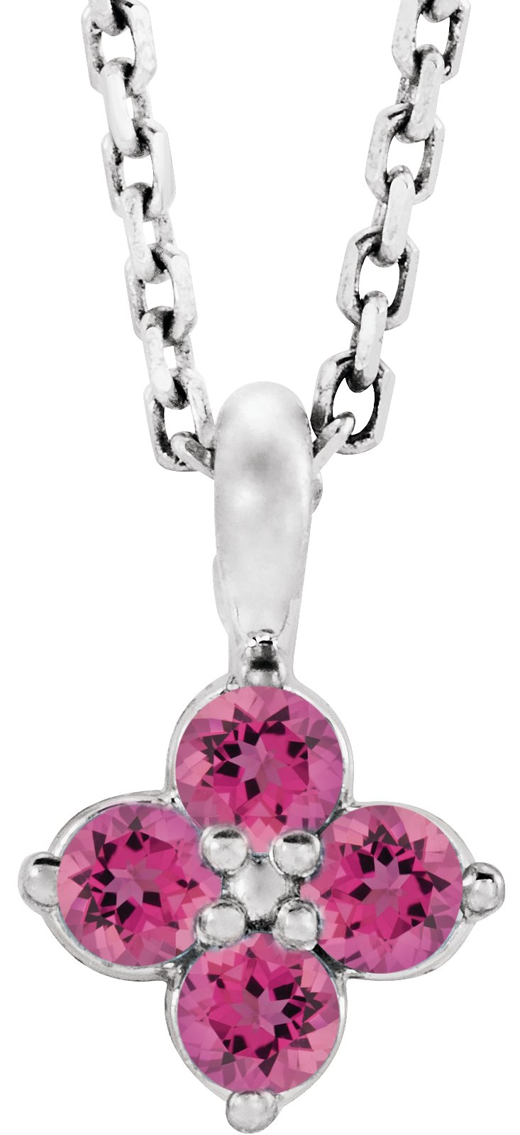 14K White Youth Pink Tourmaline 16 18 inch Necklace