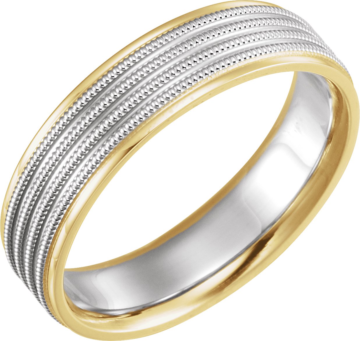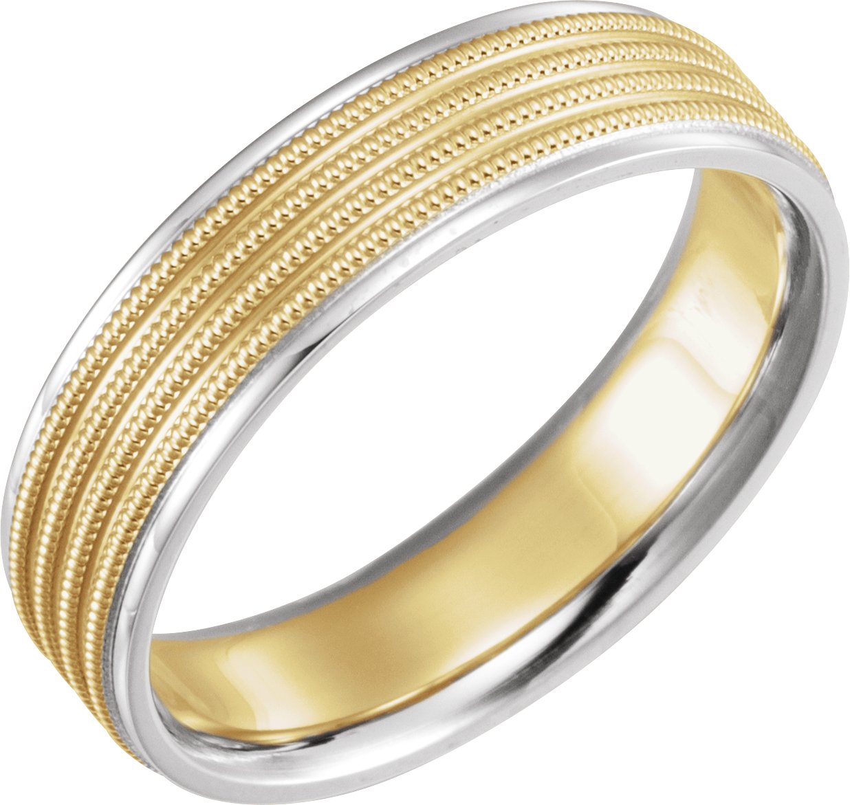 14K White and Yellow 6 mm Grooved Band with Milgrain Size 5.5