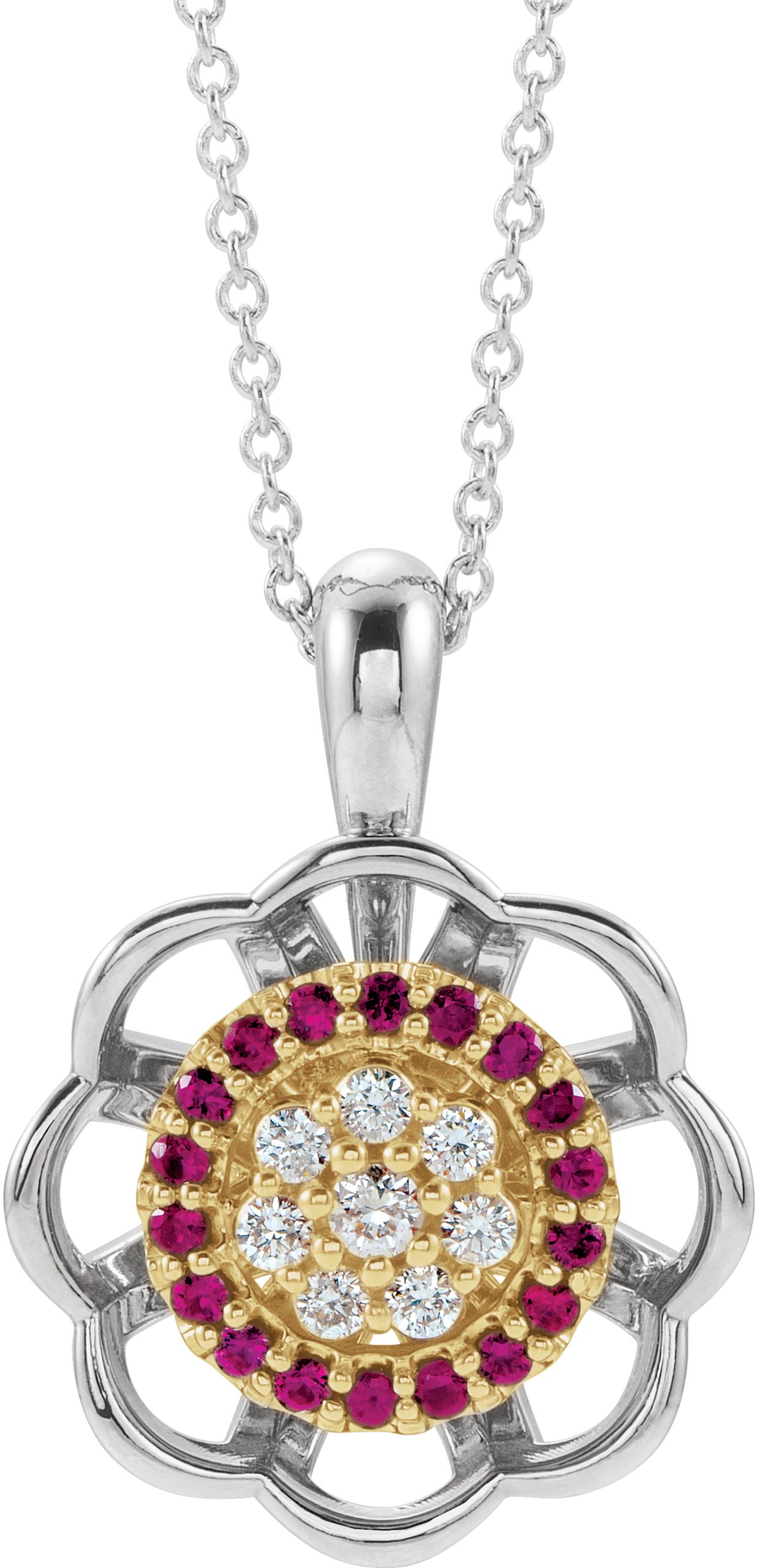 14K White/Yellow Ruby & 1/3 CTW Diamond 16 18" Necklace Ref. 15131479