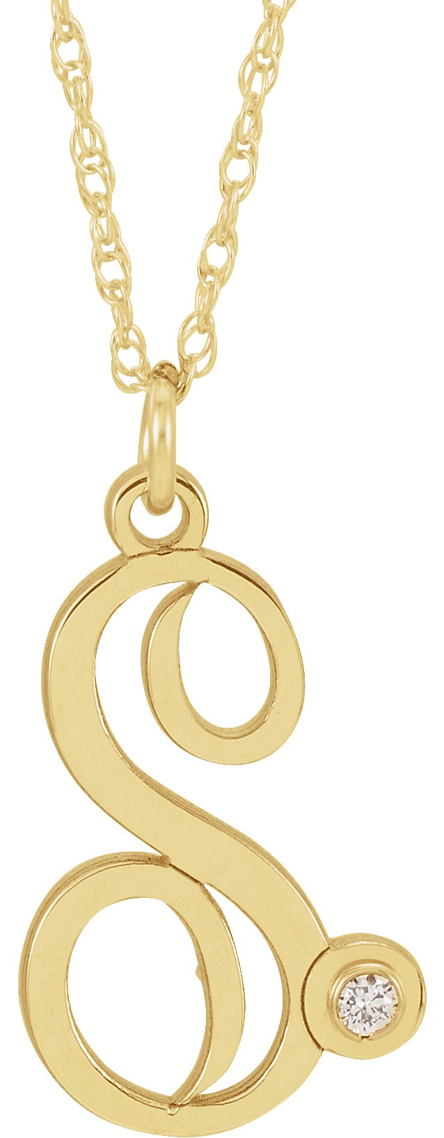 14K Yellow .02 CT Diamond Script Initial S 16 18" Necklace Ref. 16047558