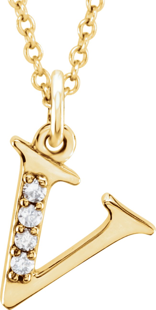 14K Yellow .02 CTW Natural Diamond Lowercase Initial V 16" Necklace