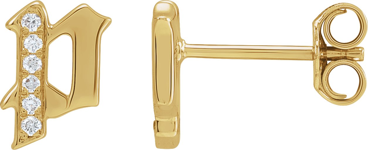 14K Yellow .03 CTW Diamond Single Gothic Initial P Earring Ref 18433479