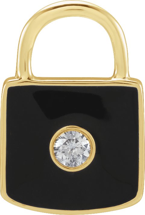 14K Yellow .035 CT Natural Diamond and Black Enamel Lock Charm or Pendant Ref 18628494