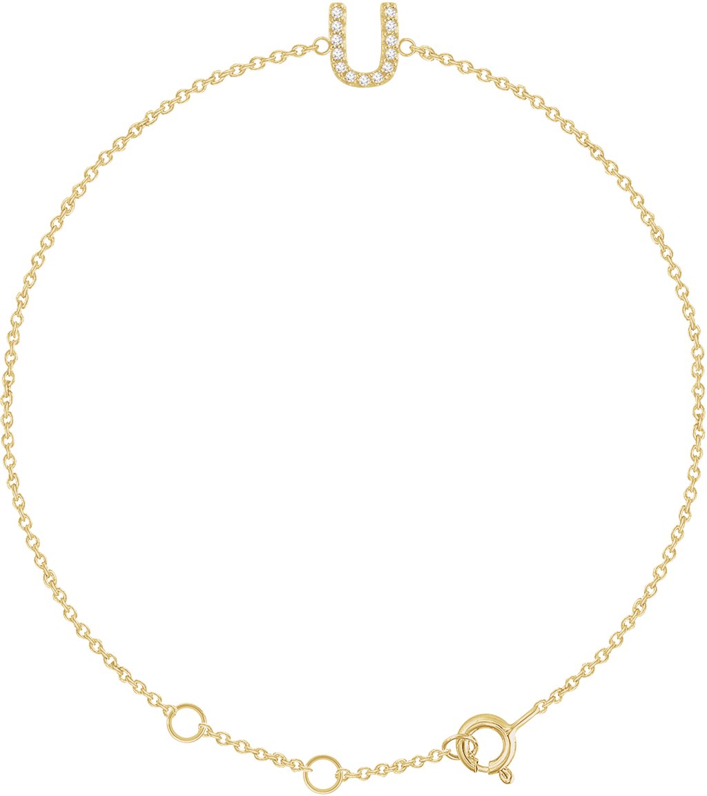 14K Yellow .05 CTW Diamond Initial U 6-7" Bracelet
