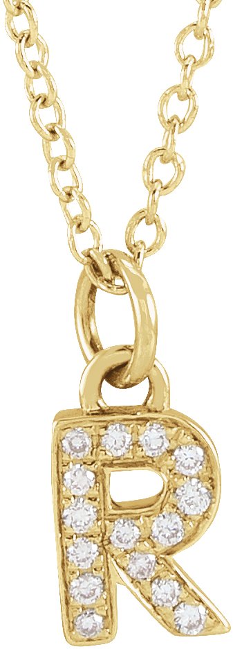14K Yellow .05 CTW Natural Diamond Petite Initial R 16 to 18 inch Necklace Ref 18053974