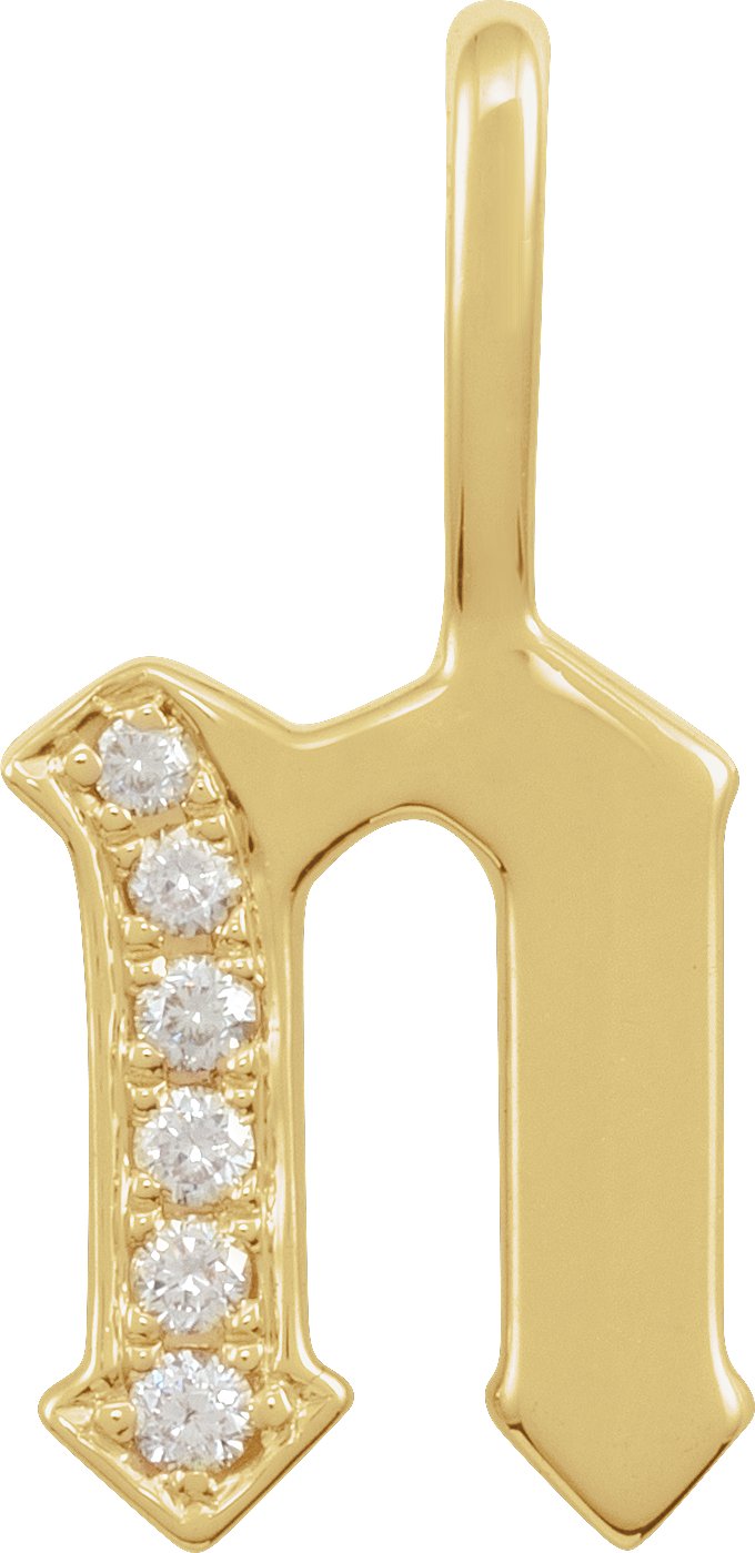 14K Yellow .06 CTW Natural Diamond Gothic Initial N Charm or Pendant Ref 18482027
