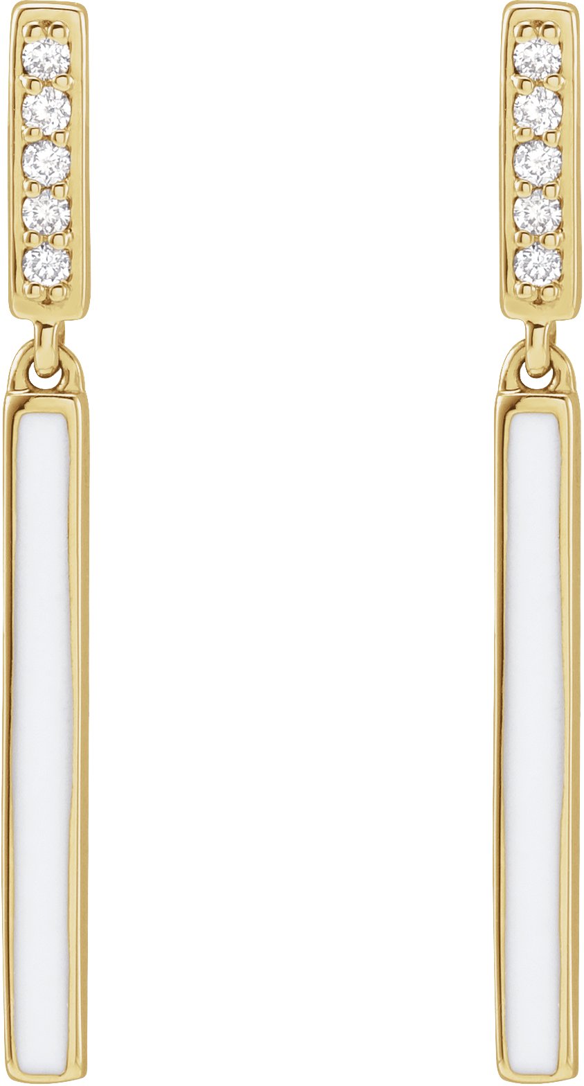 14K Yellow .06 CTW Natural Diamond and White Enamel Bar Earrings Ref 18628475