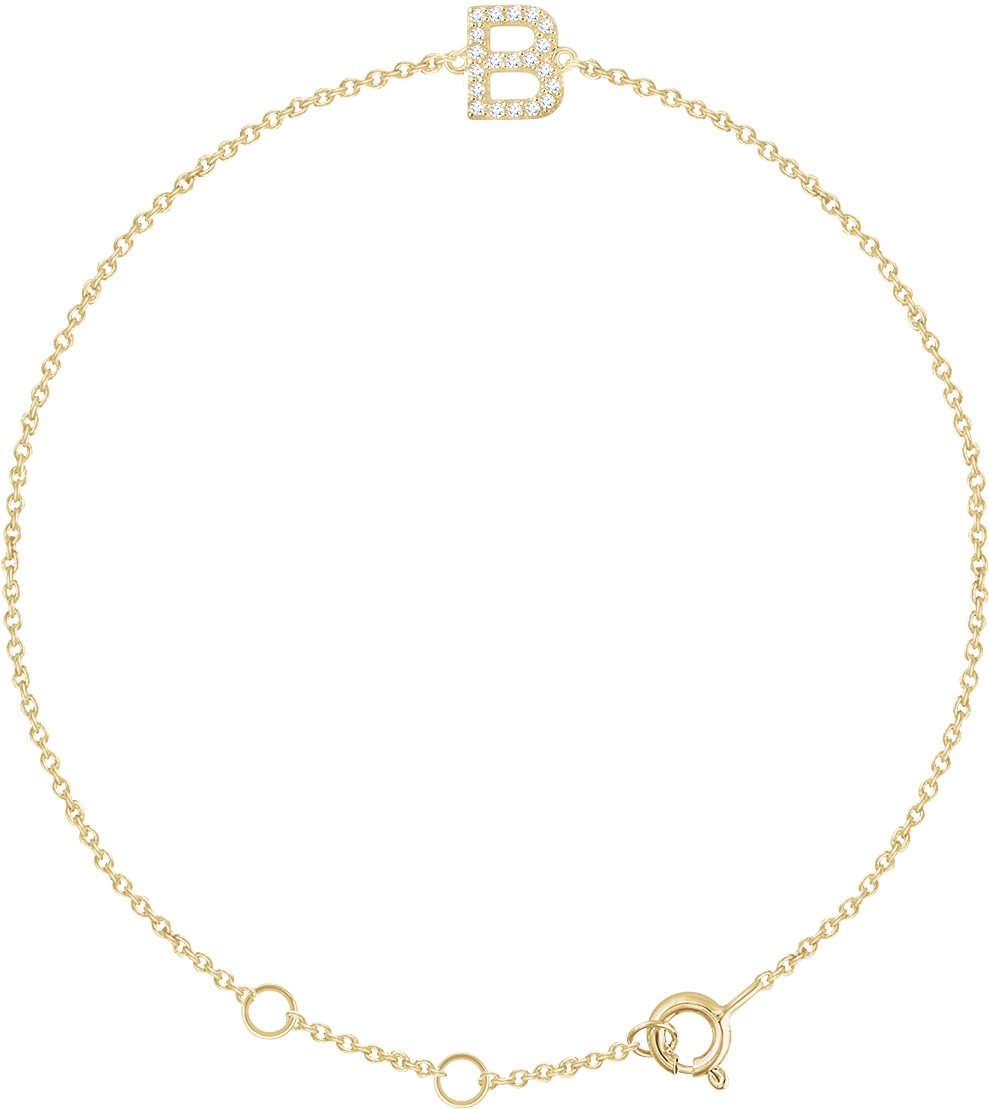 14K Yellow .07 CTW Diamond Initial B 6-7" Bracelet