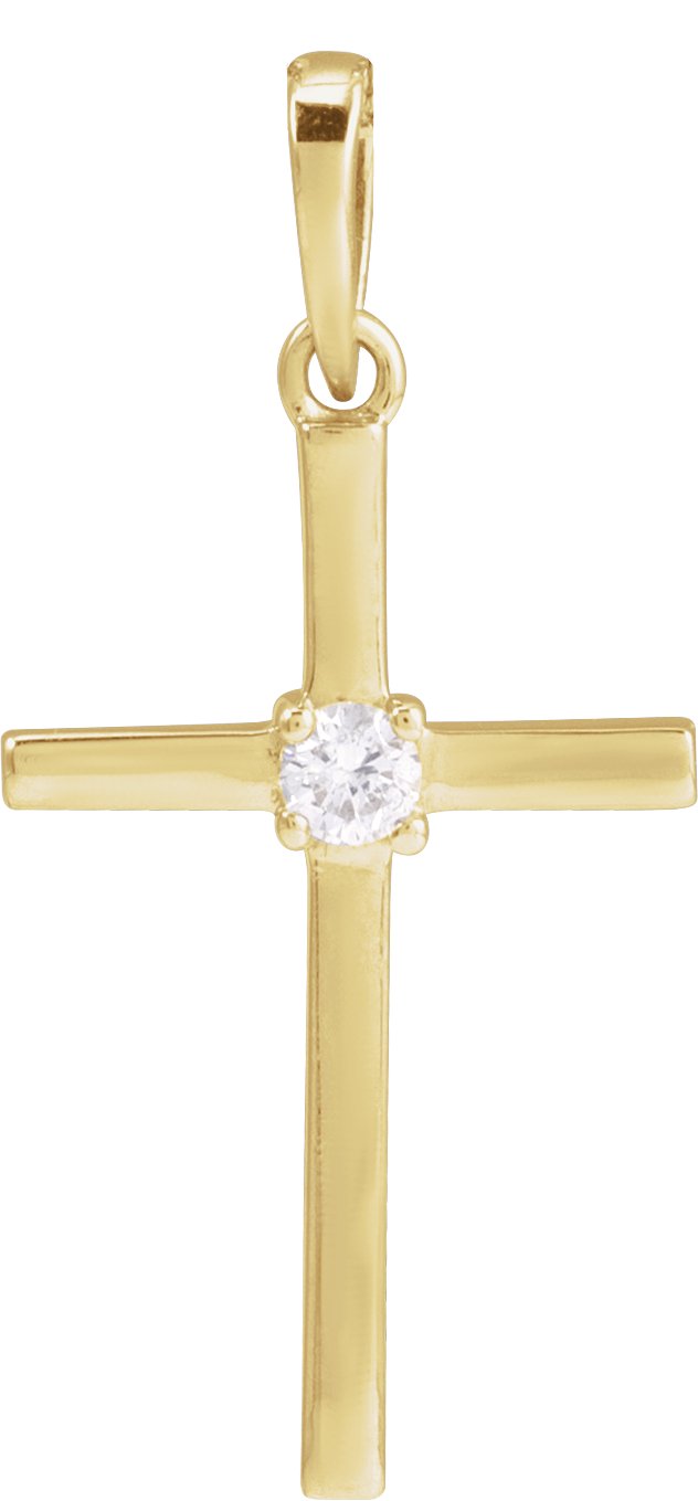 14K Yellow 1/10 CT Natural Diamond Cross Pendant