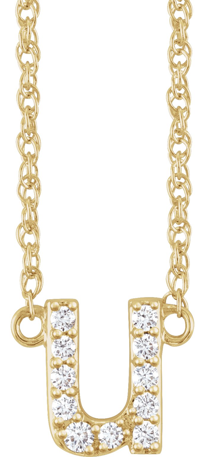 14K Yellow 1/10 CTW Natural Diamond Lowercase Initial U 16" Necklace