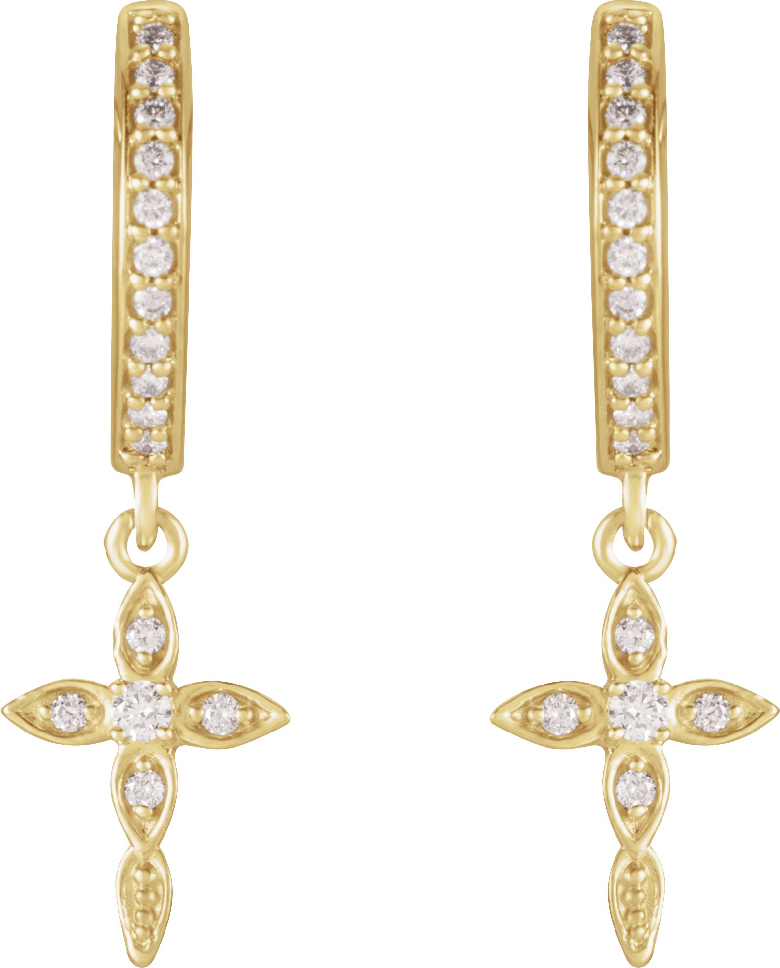 14K Yellow 1/8 CTW Diamond Cross Hinged Hoop Earrings