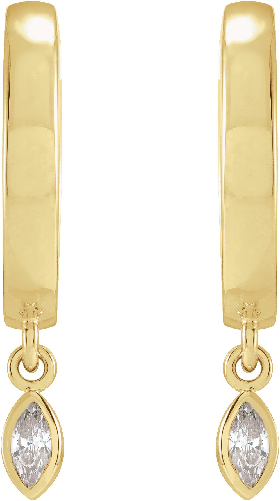 Description: 1/8 CTW Diamond Bezel Dangle Hinged Hoop Earrings