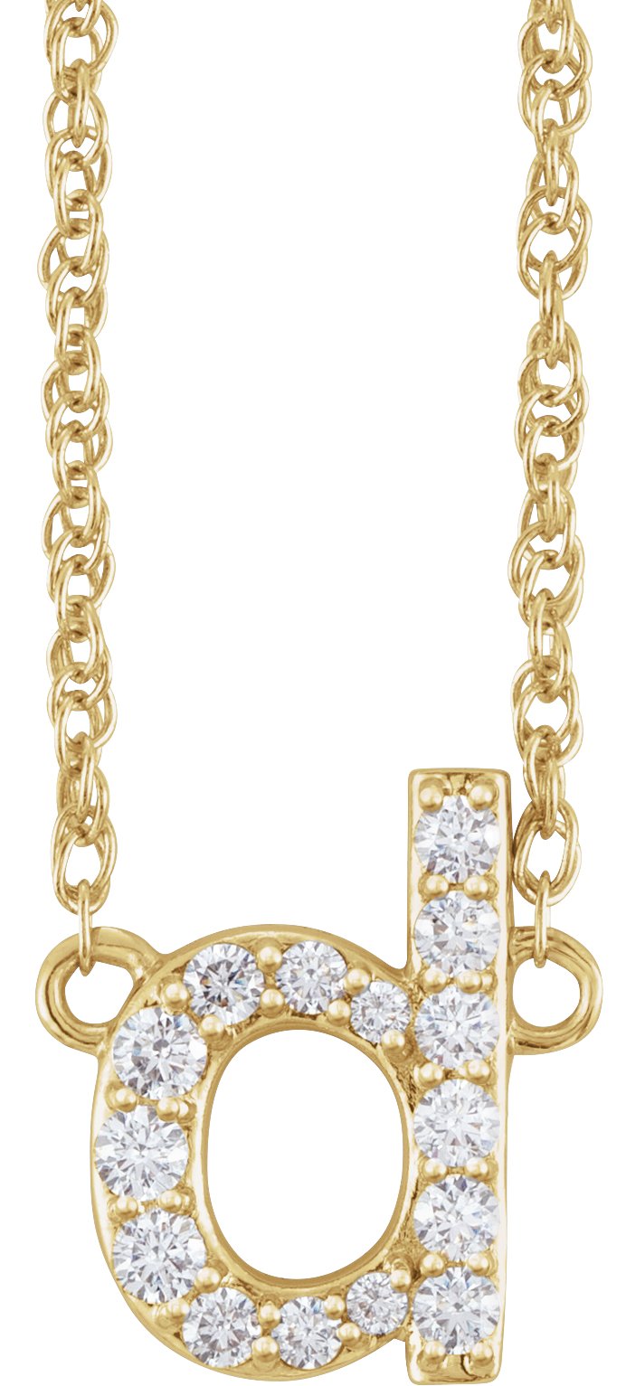 14K Yellow 1/8 CTW Natural Diamond Lowercase Initial D 16" Necklace
