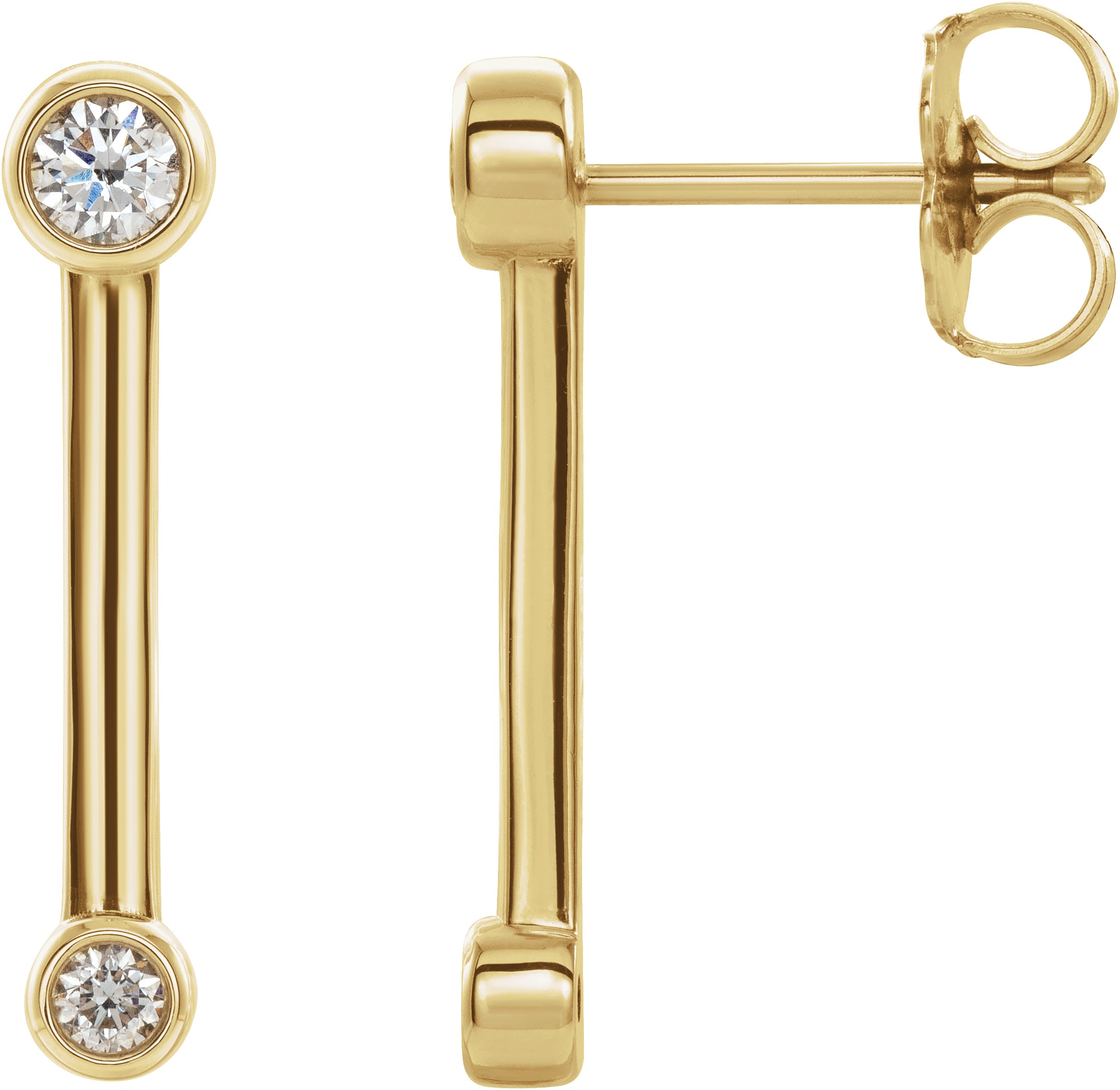 14K Yellow 1/5 CTW Diamond Bezel-Set Bar Earrings