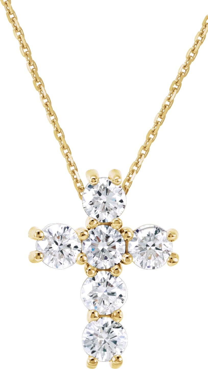 14K Yellow 1/4 CTW Lab-Grown Diamond Cross 18" Necklace
