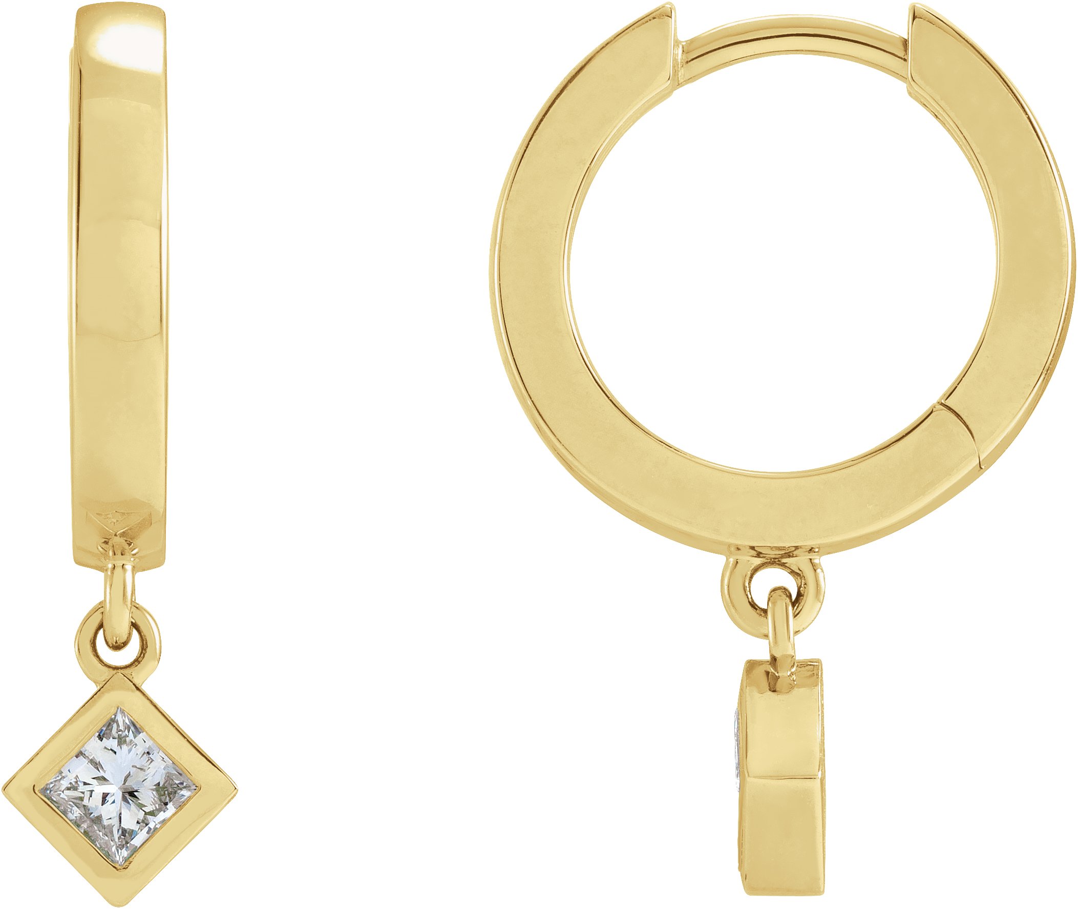 Description: 1/3 CTW Diamond Bezel Dangle Hinged Hoop Earrings