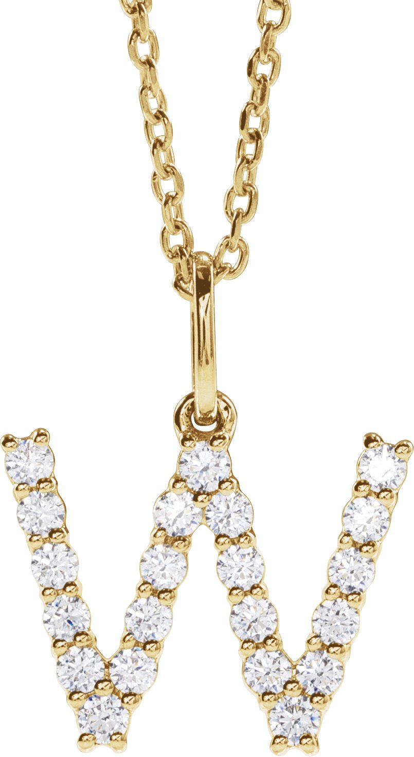 14K Yellow 1/3 CTW Lab-Grown Diamond Initial W 16-18" Necklace