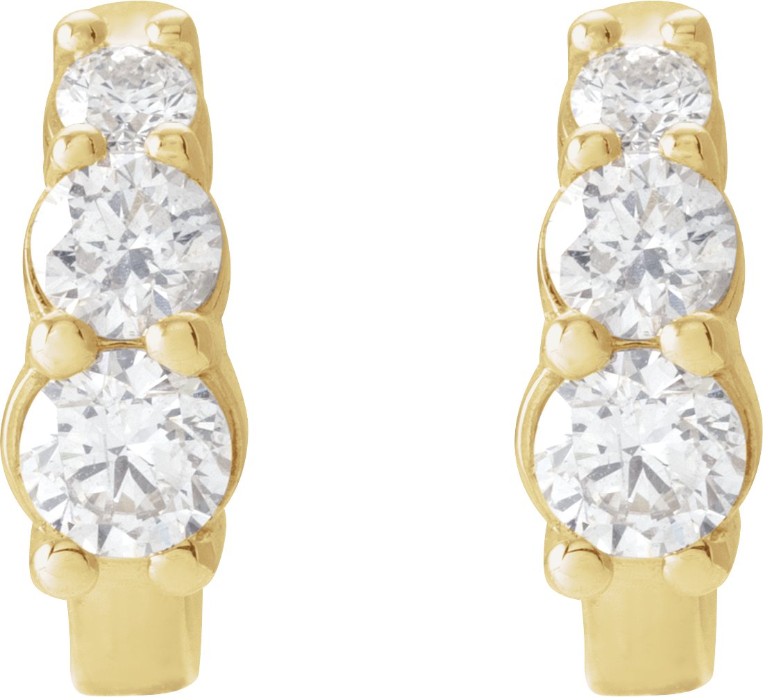 Description: 1/3 CTW Natural Diamond Graduated 3-Stone Hoop Earrings