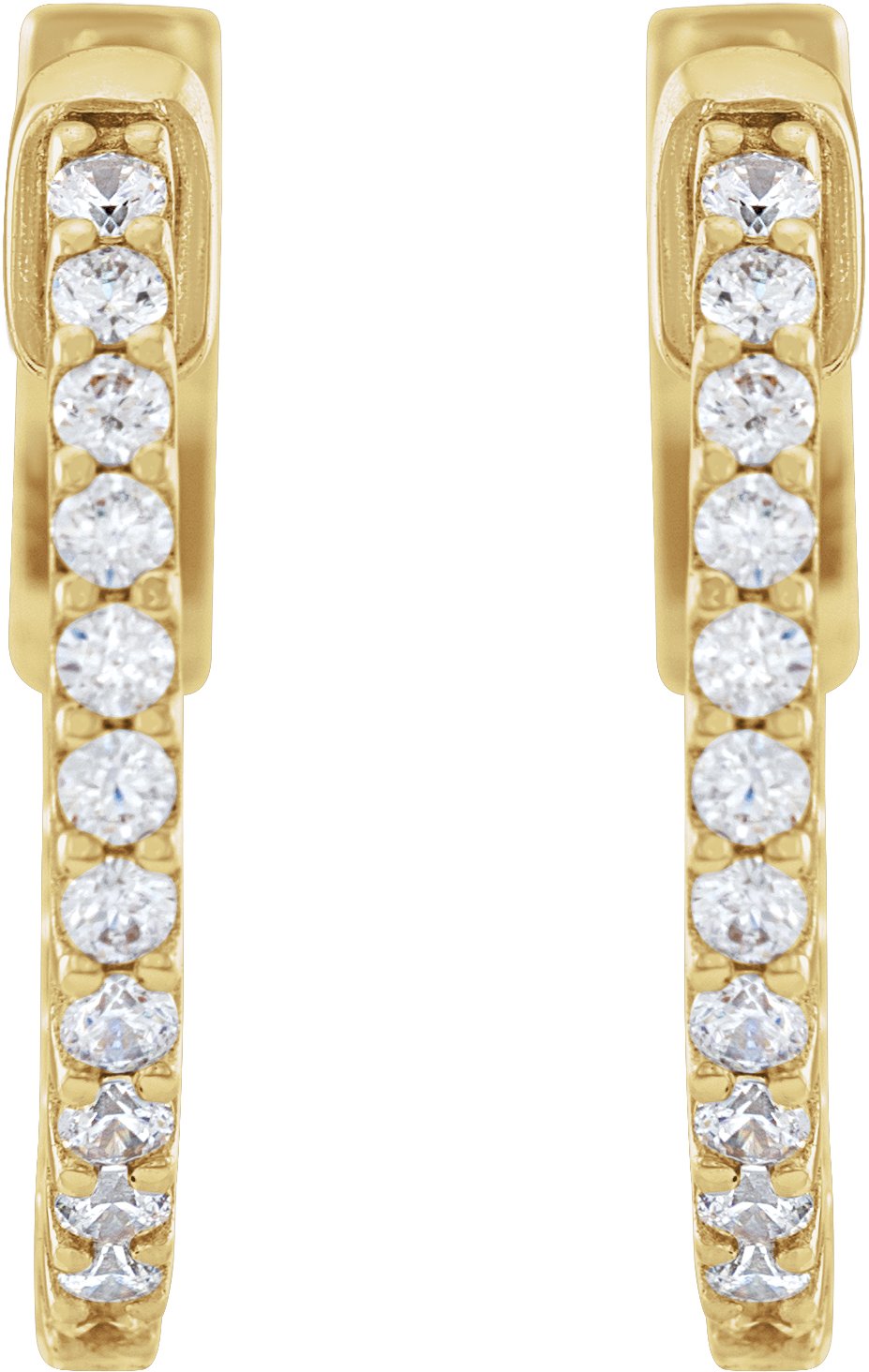 14K Yellow 1/3 CTW Natural Diamond Inside-Outside 15.5 mm Hinged Hoop Earrings