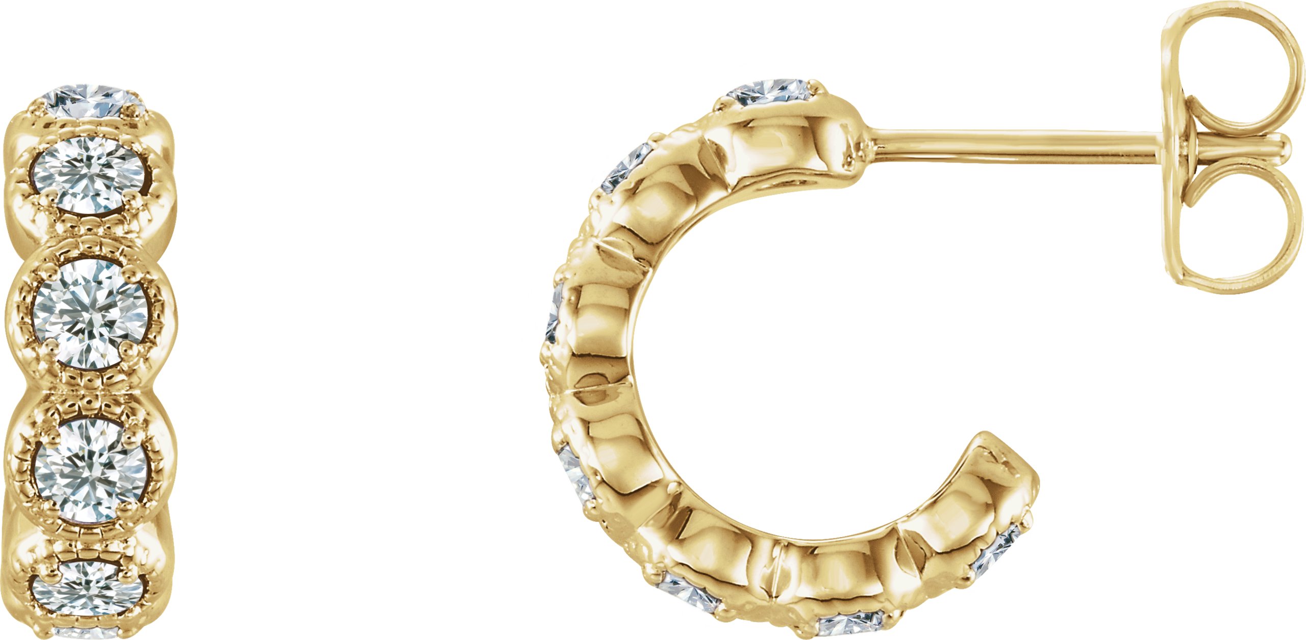 14K Yellow 7/8 CTW Diamond Hoop Earrings