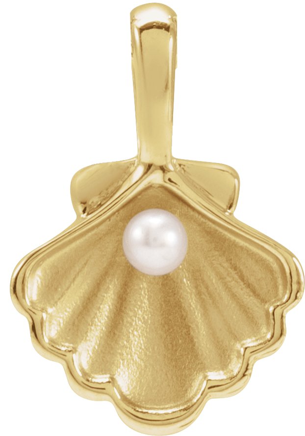14K Yellow 1-Stone Cultured White Seed Pearl Family Shell Pendant